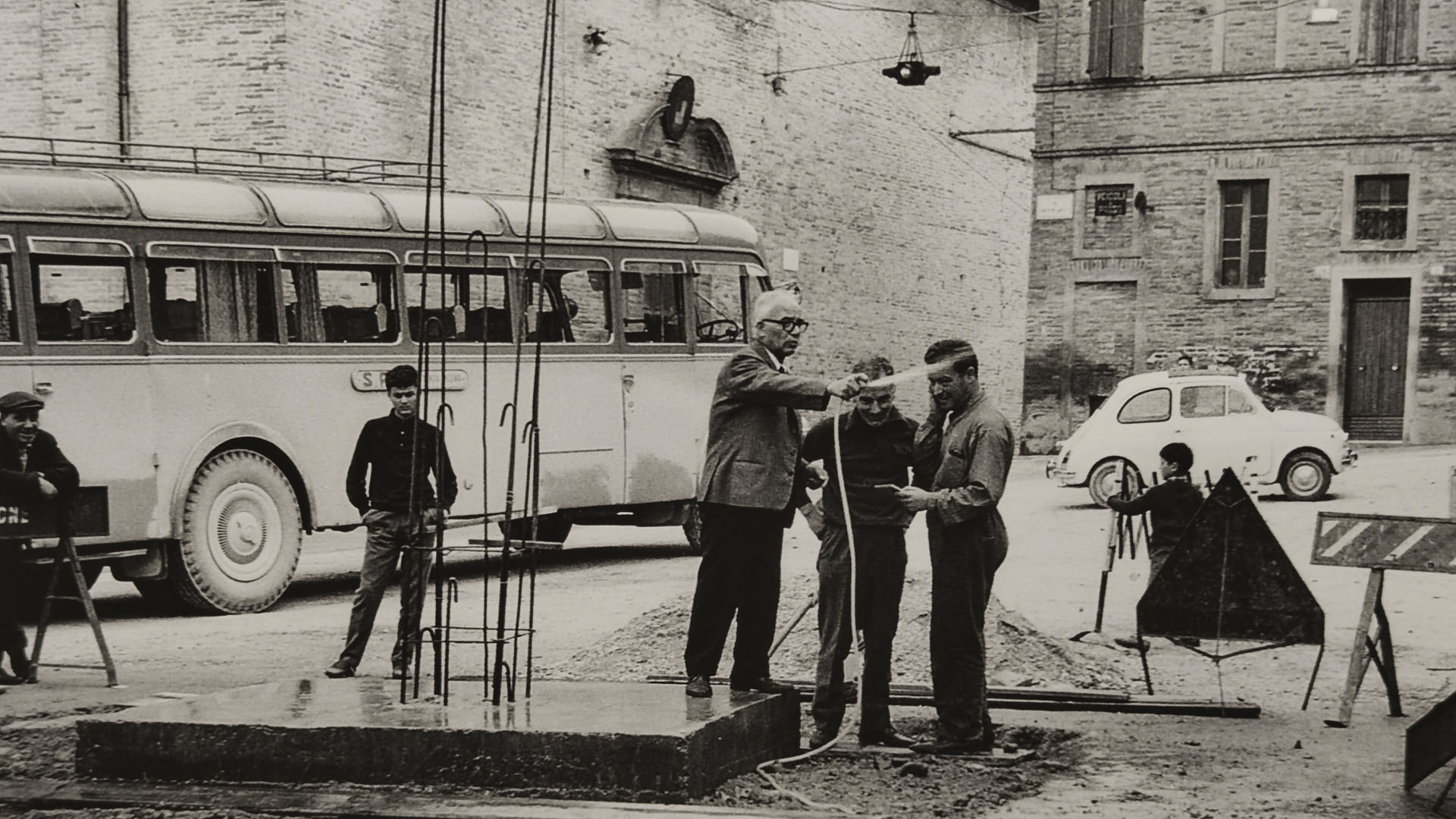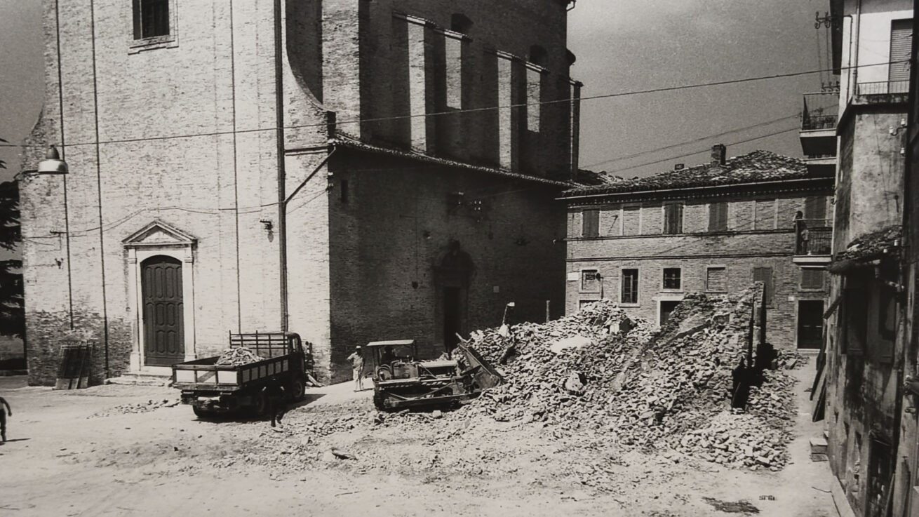 Le fotografie raccontano anche un momento di trasformazione urbana: tra gli scatti è documentata la demolizione del vecchio mattatoio, necessaria per fare spazio alla nuova costruzione.