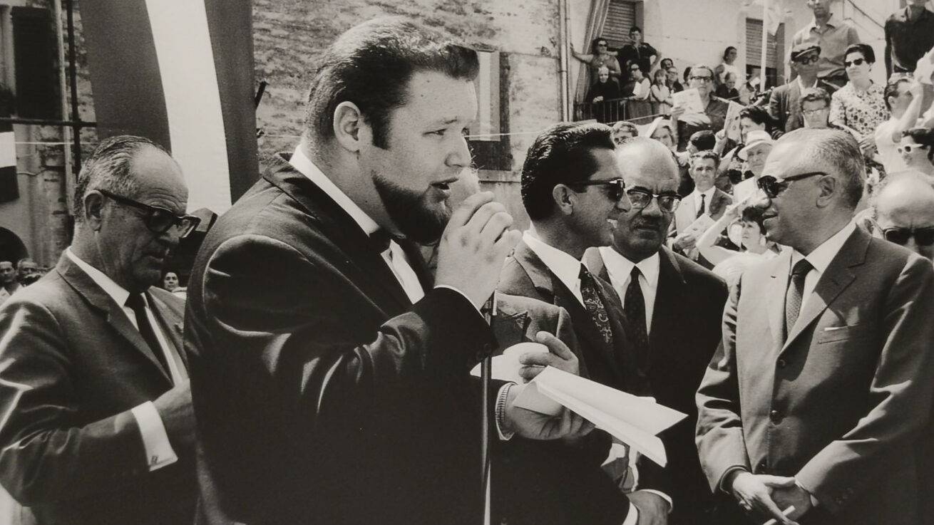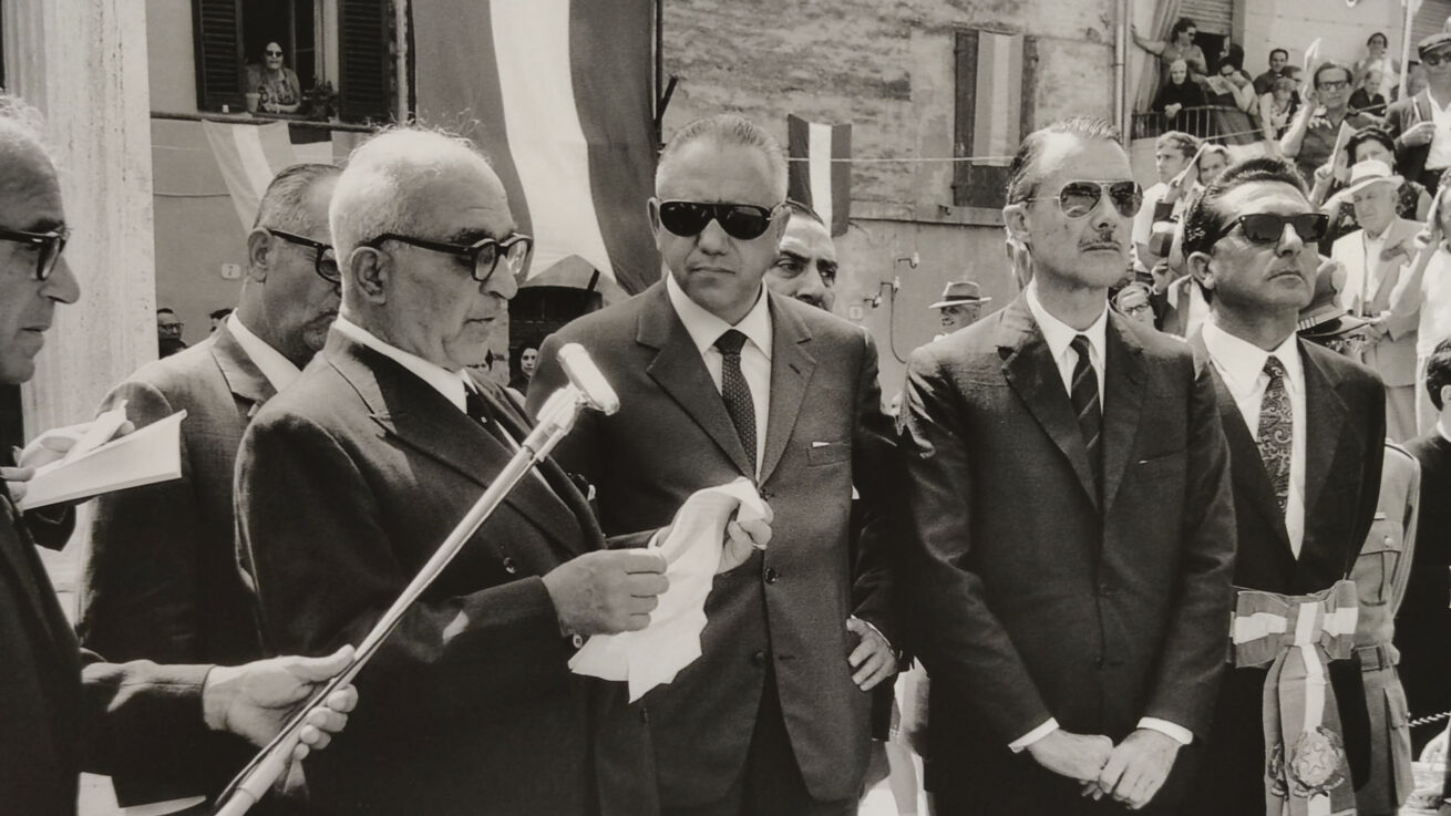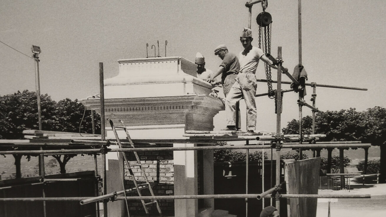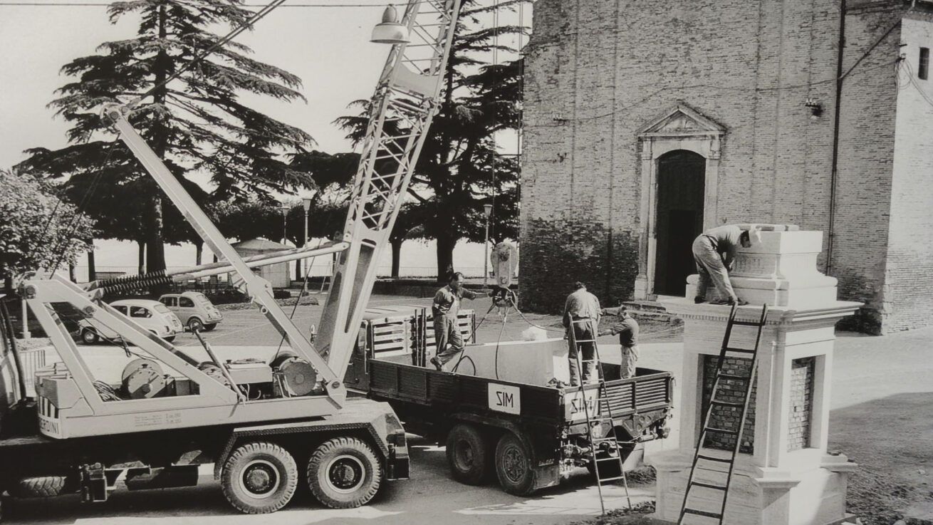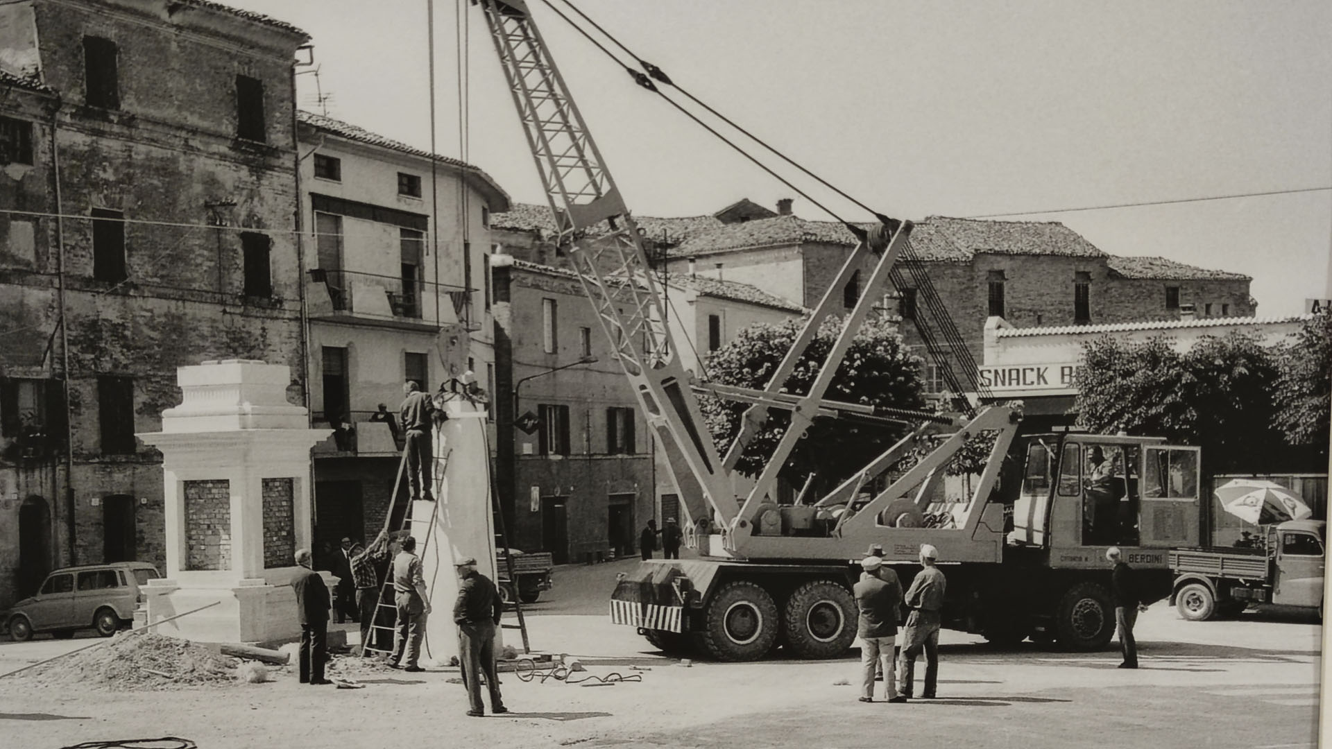 La mostra propone una selezione di immagini provenienti dall’archivio della Fototeca Comunale, realizzate da Bruno Grandinetti, che documentano l’intero processo di costruzione della Piramide de Mayo in Largo Leopardi, fino alla sua inaugurazione avvenuta il 16 luglio 1967.